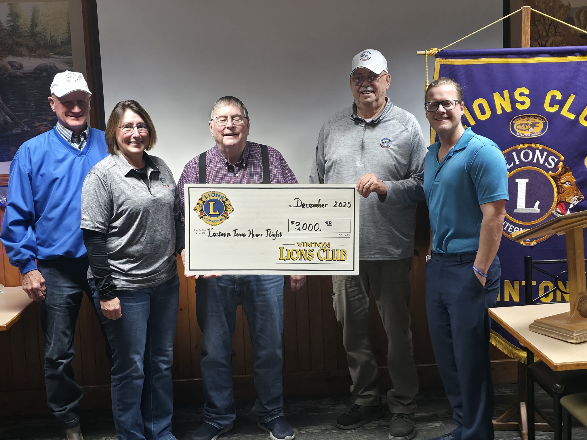 Vinton Lions Club donates $3000.00 to the Eastern Iowa Honor Flight