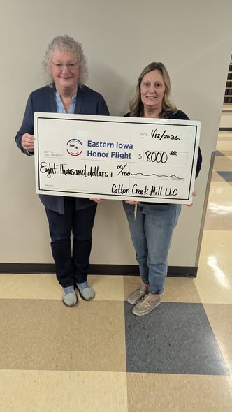 Thank you Connie from Cotton Creek Mill LLC for your $8000.00 donation. Funds raised were from a quilt auction and also a steak supper. What an amazing event and donation. So appreciative of your support. ![]()